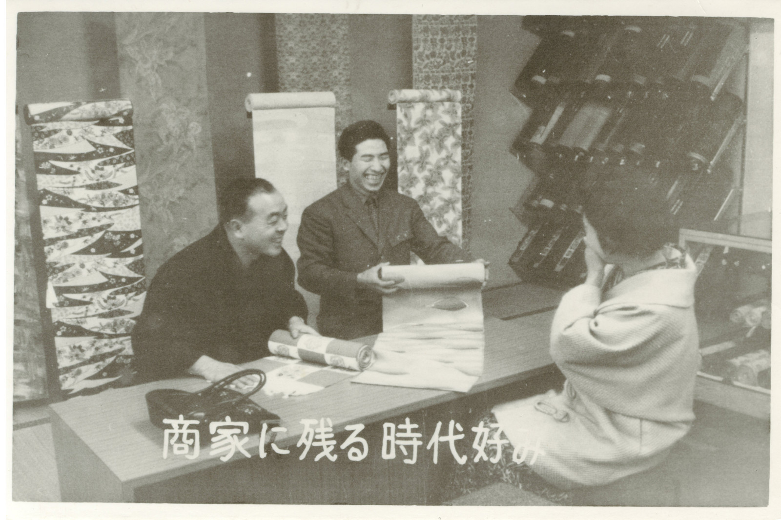 その頃の店内です。反物すごい数積んであります。