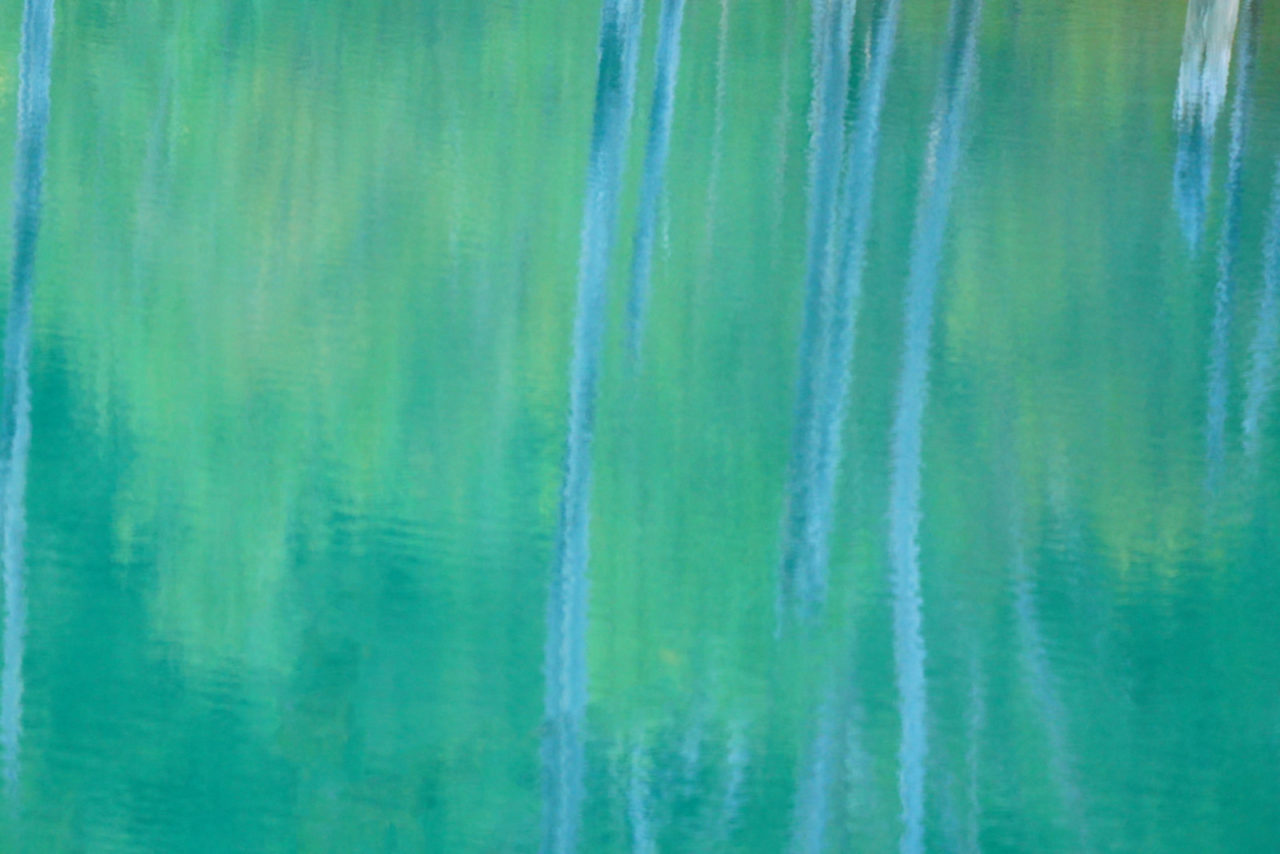 11月の凍る前の青い池、白と青の共演