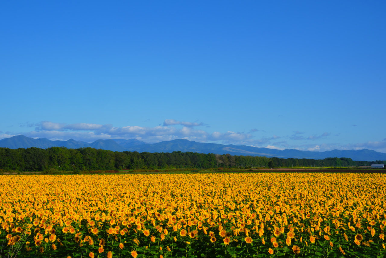 ここは十勝でした、同じひまわりでも黄色の色が違いました。こちらも国道沿いの道から眺めて帰路につきました。