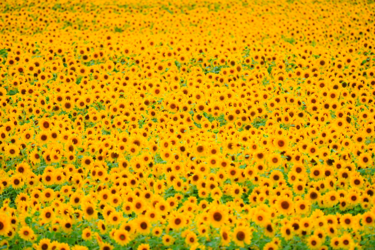 一面に咲いたひまわり畑。これも肥料用なのでしょうか、帰り際の国道沿いに見つけました。