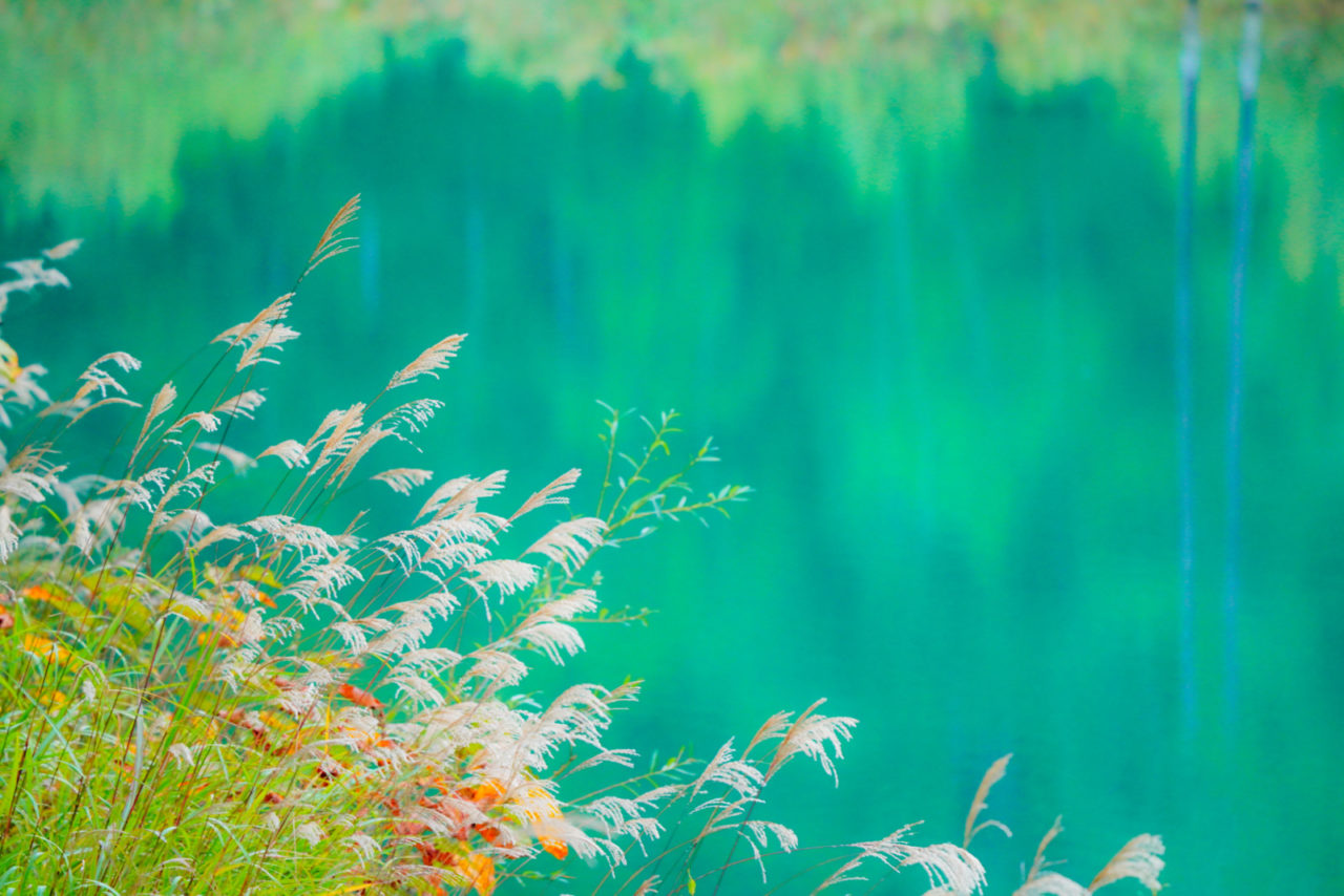 秋を感じるススキを入れて。本当に綺麗なブルー、これからの時期は紅葉とのコラボが楽しめます。