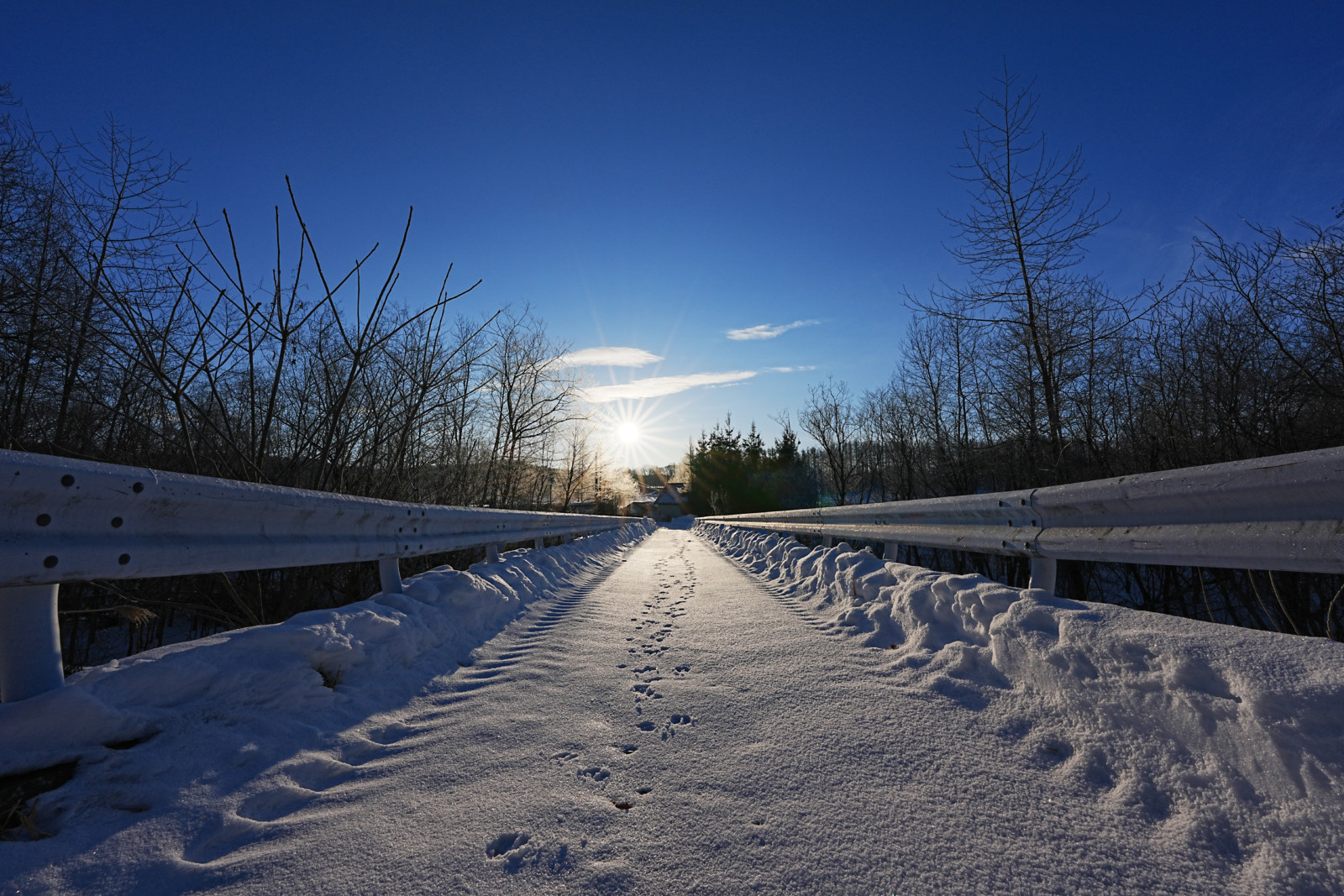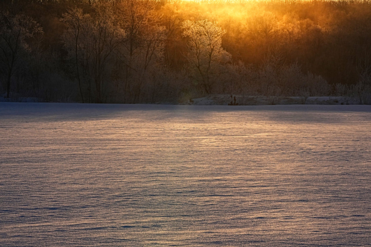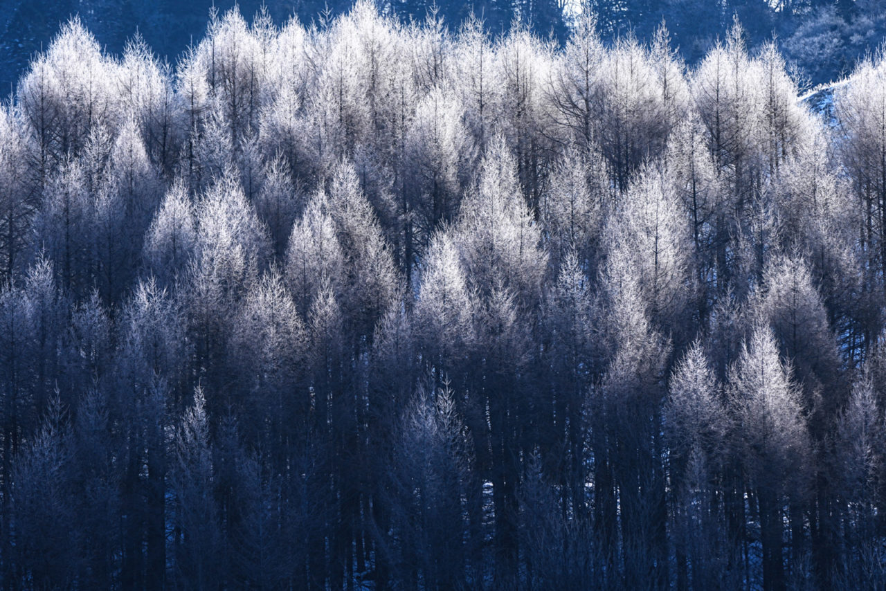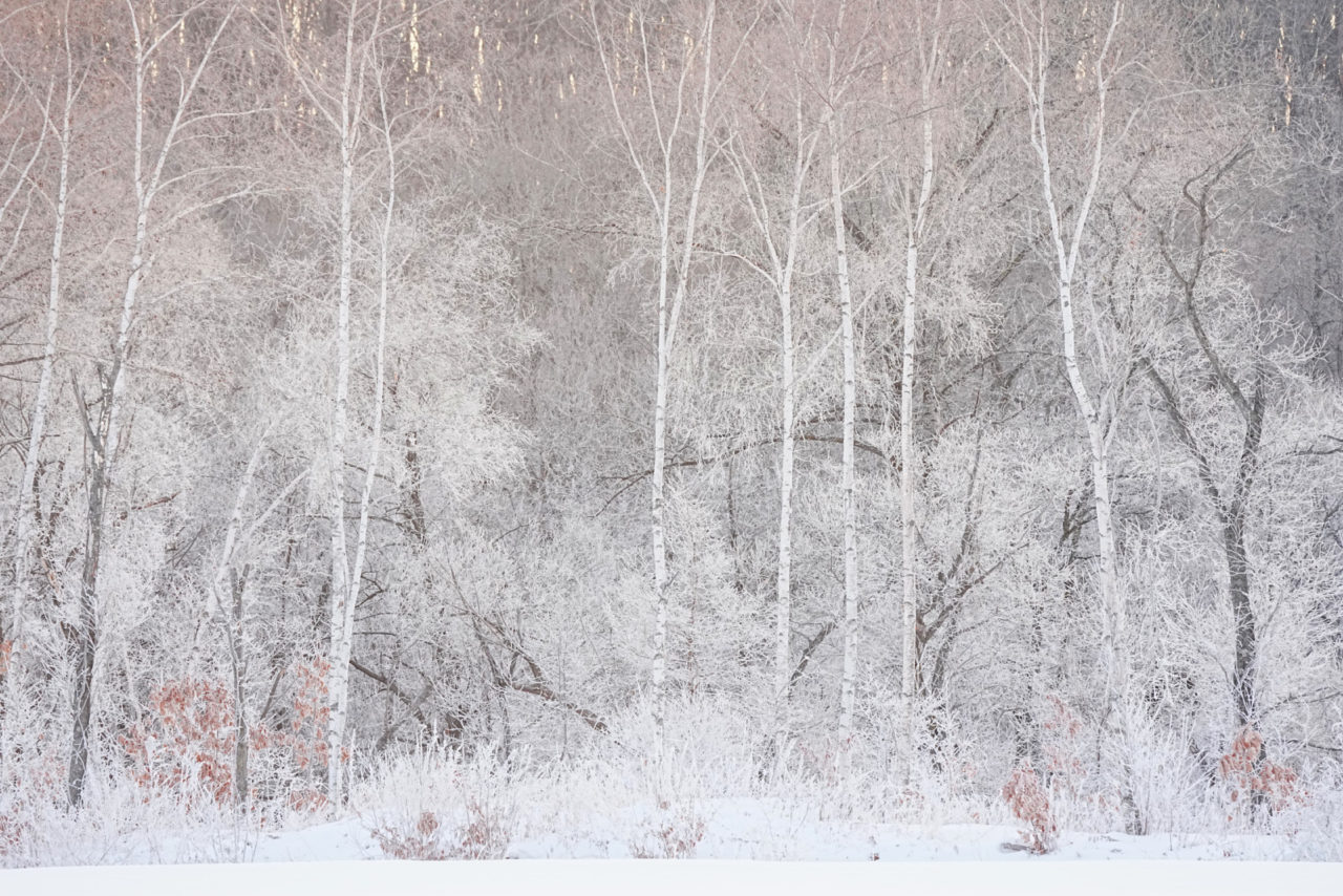 近くのこの川から水蒸気が上がって、木々の枝を白くお化粧してくれますね。